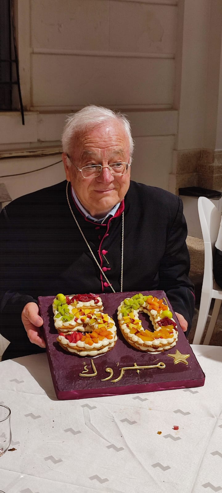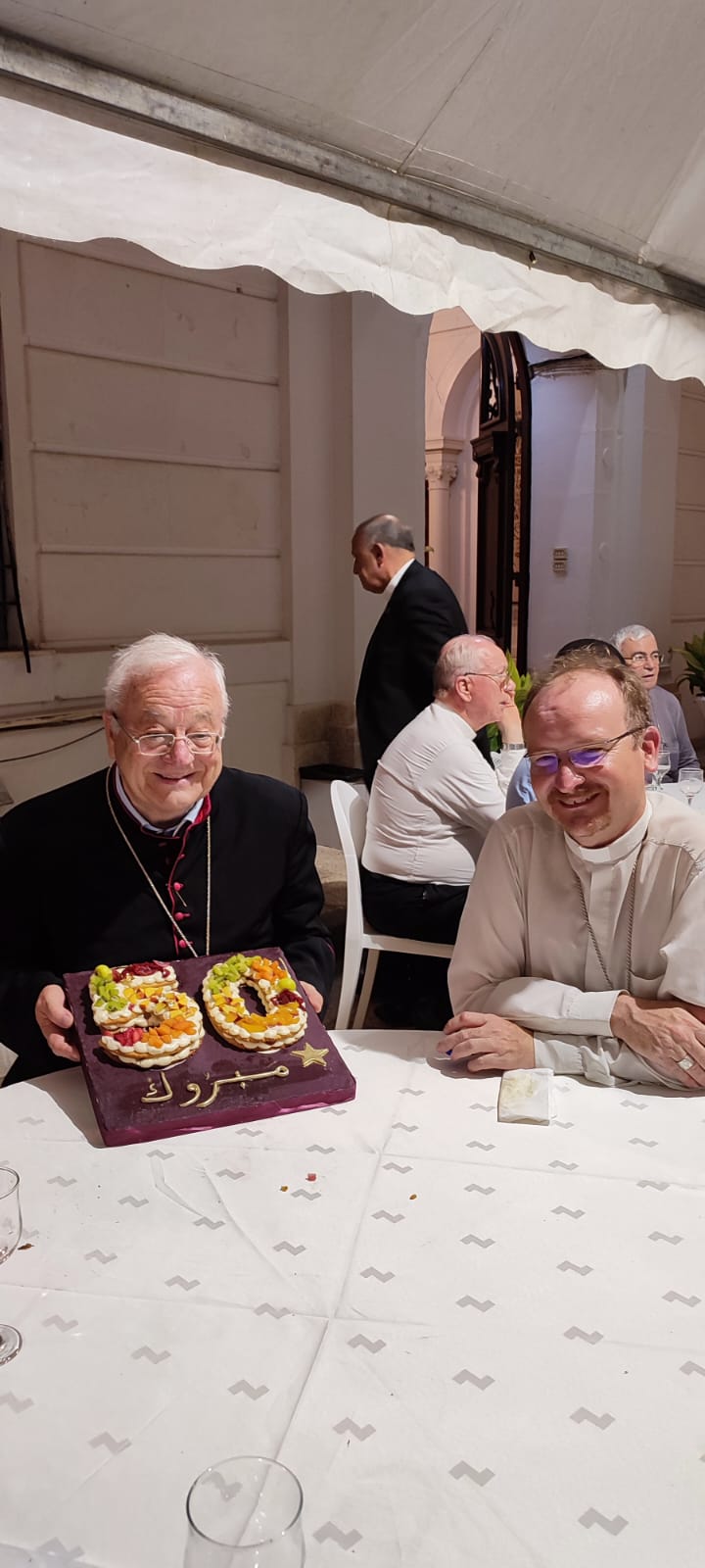 Je suis heureux que ma première visite en Tunisie en tant que Nonce Apostolique ait coïncidé avec la belle célébration du 50ème anniversaire de l’ordination sacerdotale de notre bien-aimé Archevêque Ilario Antoniazzi, qui depuis 9 ans est le pasteur de cette Église locale. Je saisis cette occasion pour le remercier pour son service inlassable à l’Église et au peuple de ce pays, et je lui souhaite le meilleur et la bénédiction de Dieu. »