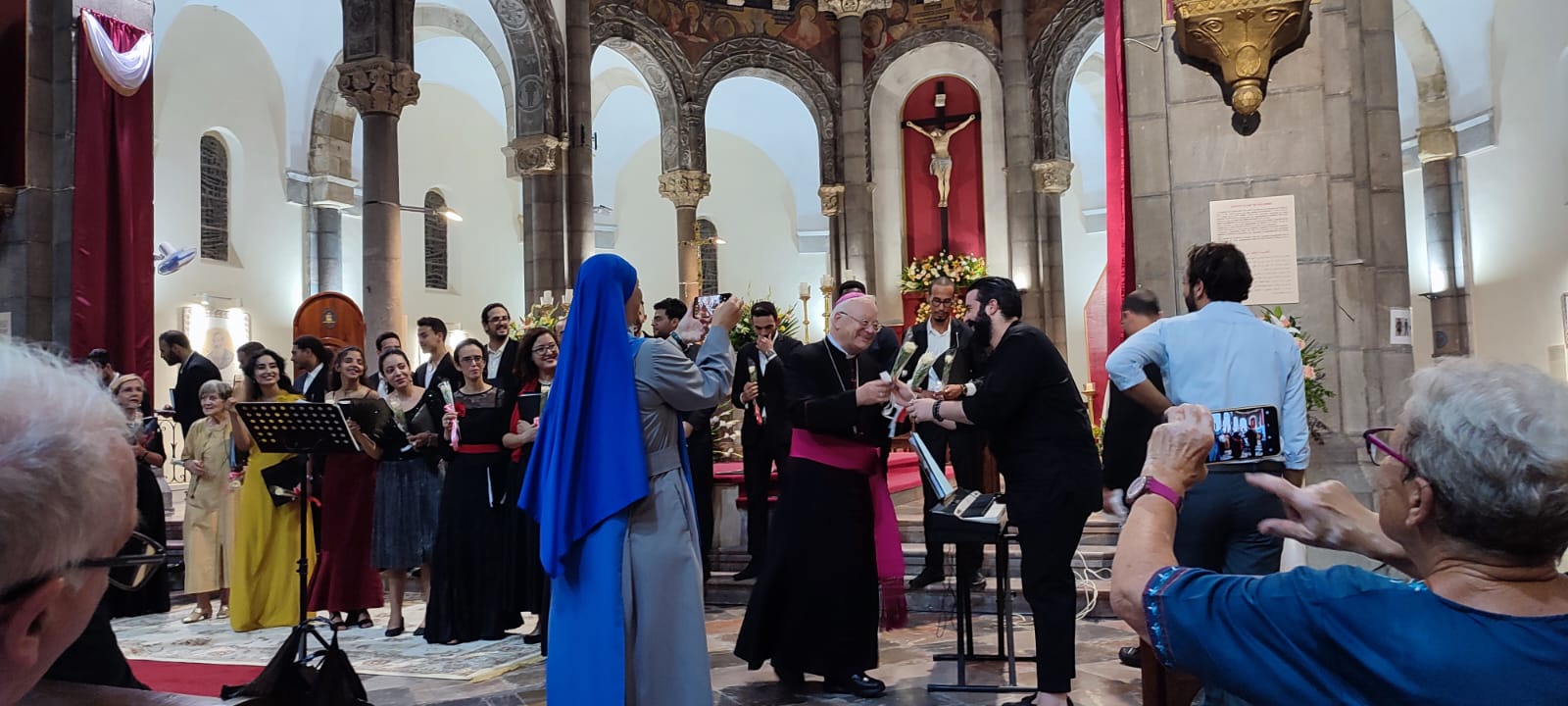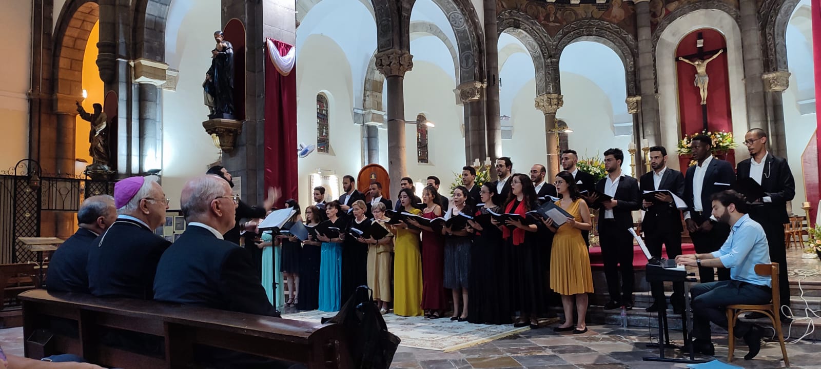 Le vendredi soir, un beau concert a été offert à Mgr Ilario par la chorale de l’orchestre symphonique de Tunis à la Cathédrale. Cela nous a permis d’apprécier, encore une fois, l’estime, le respect, l’amitié entre cultures et horizons différents qui caractérisent l’âme de ce Pays.