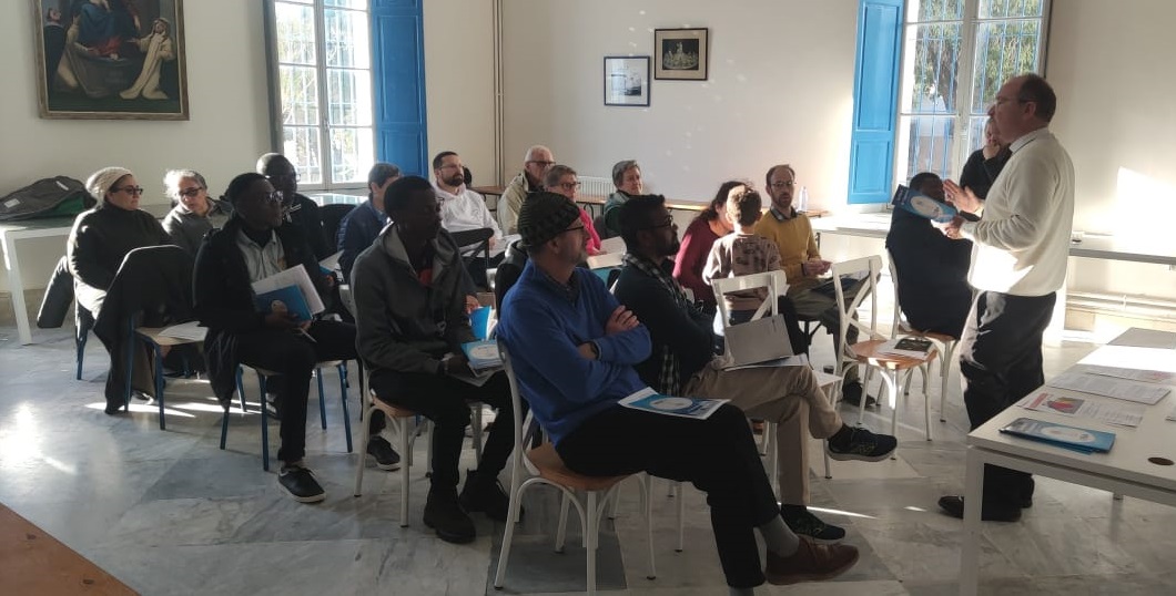 Ils étaient dix-huit nouveaux arrivants – religieux, religieuses, prêtres et laïcs – représentant treize nationalités différentes, venus des quatre coins du monde. Cette diversité, reflet de l’universalité de l’Église, a immédiatement donné à la session une tonalité riche et profondément fraternelle. Les participants étaient accompagnés par quatre membres du Bureau de la COSMADT, ainsi que par l’Archevêque de Tunis, Mgr Nicolas Lhernould, qui a assuré l’accompagnement spirituel et le contenu central de la rencontre.
